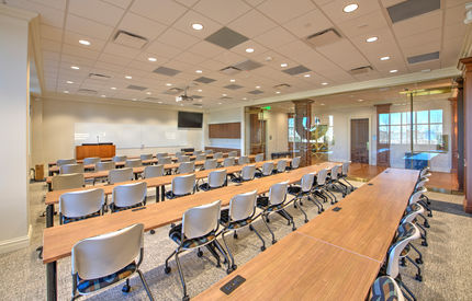 The result is an environment that balances tradition with intention. A refined material palette and structured planning create formal learning spaces, focused study areas, and gathering environments that feel both serious and welcoming, because the best legal minds need room to think and to connect.